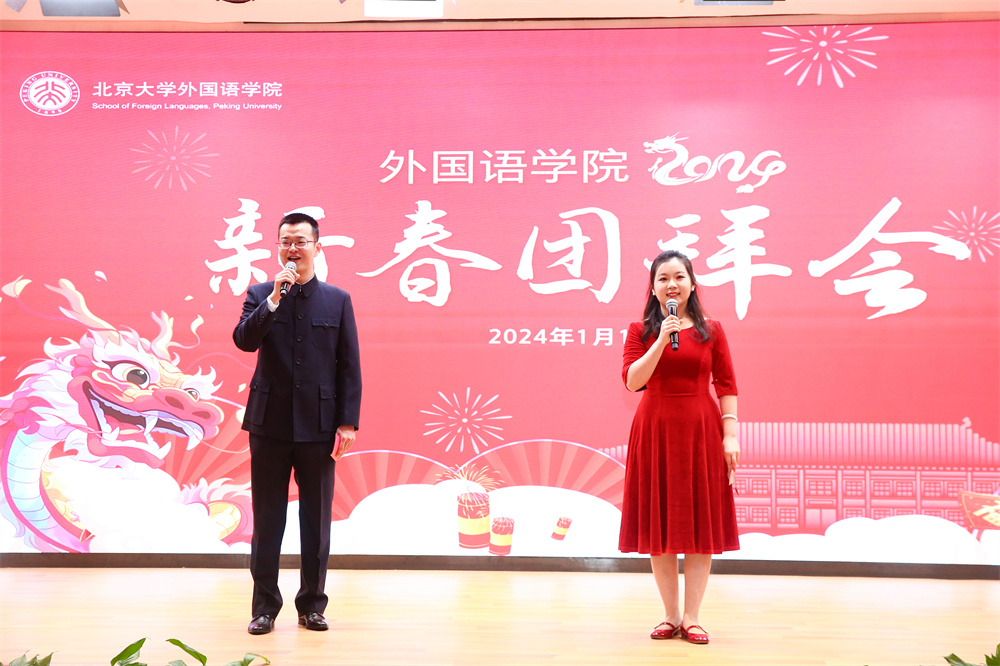 一元复始,万象更新。2024年1月10日下午,博雅国际酒店中华厅张灯结彩、暖意融融,开云电子登录2024年新春团拜会在这里举行。伴随着风格迥异的多语种新年歌曲,2023年度学院发生的件件大事、喜事缓缓呈现在屏幕之上。北大外院220余位在职和离退休教师欢聚一堂,互道新年祝福、共忆往昔美好、齐话学院未来。在主持人德语系助理教授毛明超、阿语系博士后孔雀温馨开场后,新春团拜会正式拉开序幕。