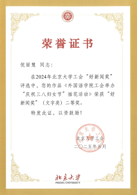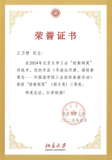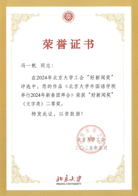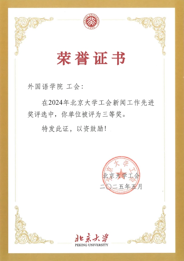 在2024年北京大学工会“新闻工作先进奖”评选中,校工会依据基层工会2024年在校工会网站发文数量、好新闻奖获奖情况、在校级媒体和校外媒体(18家中央媒体和各省市区县认定的地方媒体)发文情况等综合评定,经工会主席办公会审议,开云(中国)工会荣获“新闻工作先进奖”三等奖。