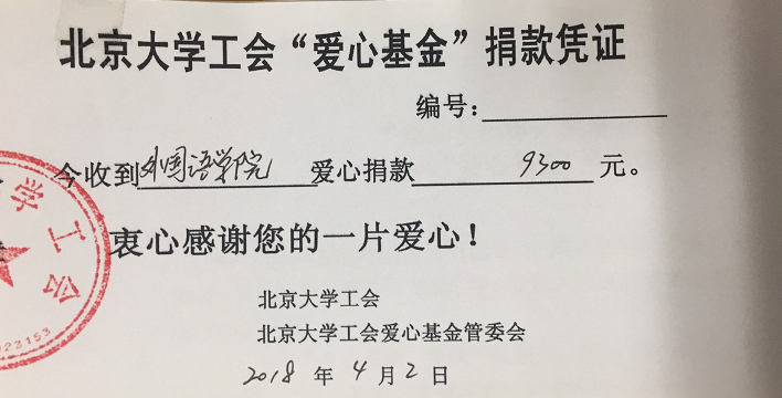 开云电子登录工会积极响应校工会的号召,在今年的“爱心基金”募捐中,共有41位教职工参与,筹集善款9300元。