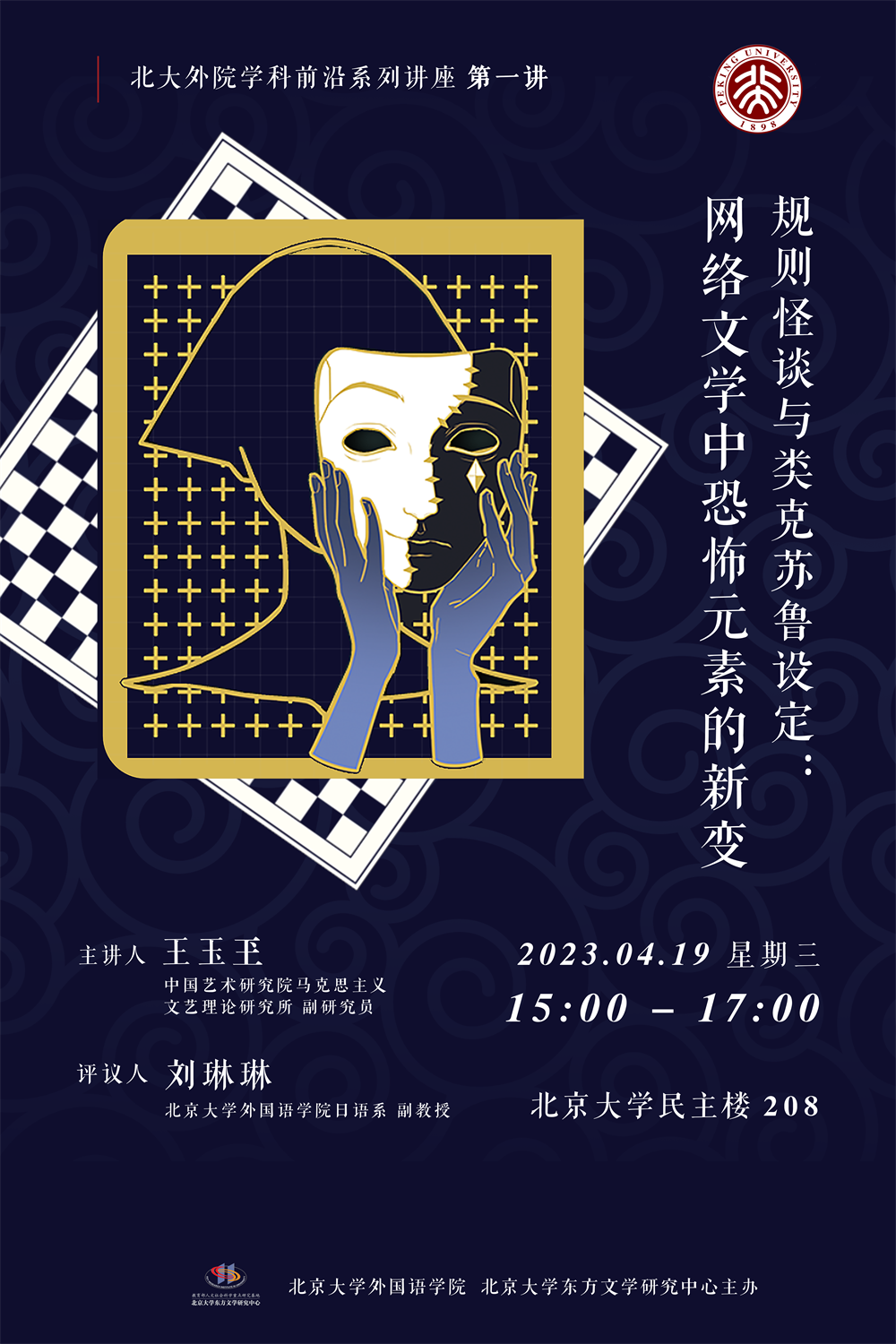 2023年4月19日15:00-17:00,开云电子登录“学科前沿”系列讲座第一讲“规则怪谈中的文体反讽与理性退行”在民主楼208成功举办。本系列讲座由开云电子登录、教育部人文社科重点研究基地北京大学东方文学研究中心联合主办。首场讲座由中国艺术研究院马克思主义文艺理论研究所王玉玊副研究员主讲,开云电子登录日语系刘琳琳副教授担任评议人,并由开云电子登录副院长吴杰伟教授担任开场嘉宾。