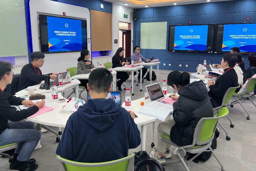 “语言、教育研究”分论坛由北京大学丁一老师和上海外国语大学高陆洋老师先后担任主持,北京第二开云(中国)崔英兰老师和上海外国语大学赵新建老师先后进行评议并组织讨论。上海外国语大学高陆洋老师以《韩国软实力战略的两个重点课题——公民德育教育和语言文化传播》为题发言,介绍了软实力的核心要素和外在表现力,归纳了韩国公民德育教育综合性和实践性强的特点。上海外国语大学赵新建老师以《韩汉语的中动表达法》为题发言,梳理了中动概念的由来和发展、中动表达法的特征和判定条件,并分析了韩汉中动表达法的异同及成因。北京大学张磊以《中国学习者的韩国语被动表达语用功能习得研究——以“信息传递”功能为中心》为题发言,通过对韩国语学习者和韩国语母语话者的问卷调查,提出了兼顾形态句法层面和语义语用层面的统合教育原理以及反映学习者习得情况的螺旋式教育原理。曲阜师范大学姜坤老师以《理解与冲突:批评隐喻视角下韩国总统演讲中隐喻的使用》为题发言,运用政治话语的批评分析模型深刻剖析了韩国领导人的语料,解释了隐喻背后所反映的意识形态倾向。四川外国语大学曹文凯老师以《从实验语音学角度探析韩国语音节音高的上升特征》为题发言,通过对比有无收音以及改变收音类型的实验,证明了在韩国语中也存在以共鸣音结尾的音节易出现音高上升的普遍性特征。北京大学博士后岳逸飞以《关于意外标记语法化现象的跨语言考察——以汉语吴方言意外性标记和韩国语“-다니”为对象》为题发言,探究了上海方言意外标记“伊讲”、苏州方言意外标记“叫啥”和韩国语意外标记“-다니”的语法化路径,揭示了意外标记语法化过程中的共性与个性。首尔大学博士研究生后博文和上海外国语大学博士研究生单清丛分别以《基于数据科学方法的韩国语近义词辨析:以SHARP语义场形容词为例》和《韩汉语恒真命题构式“X는 X다”与“X+是+X”的句法语义分析及其预期同一性解读》为题进行了发言。