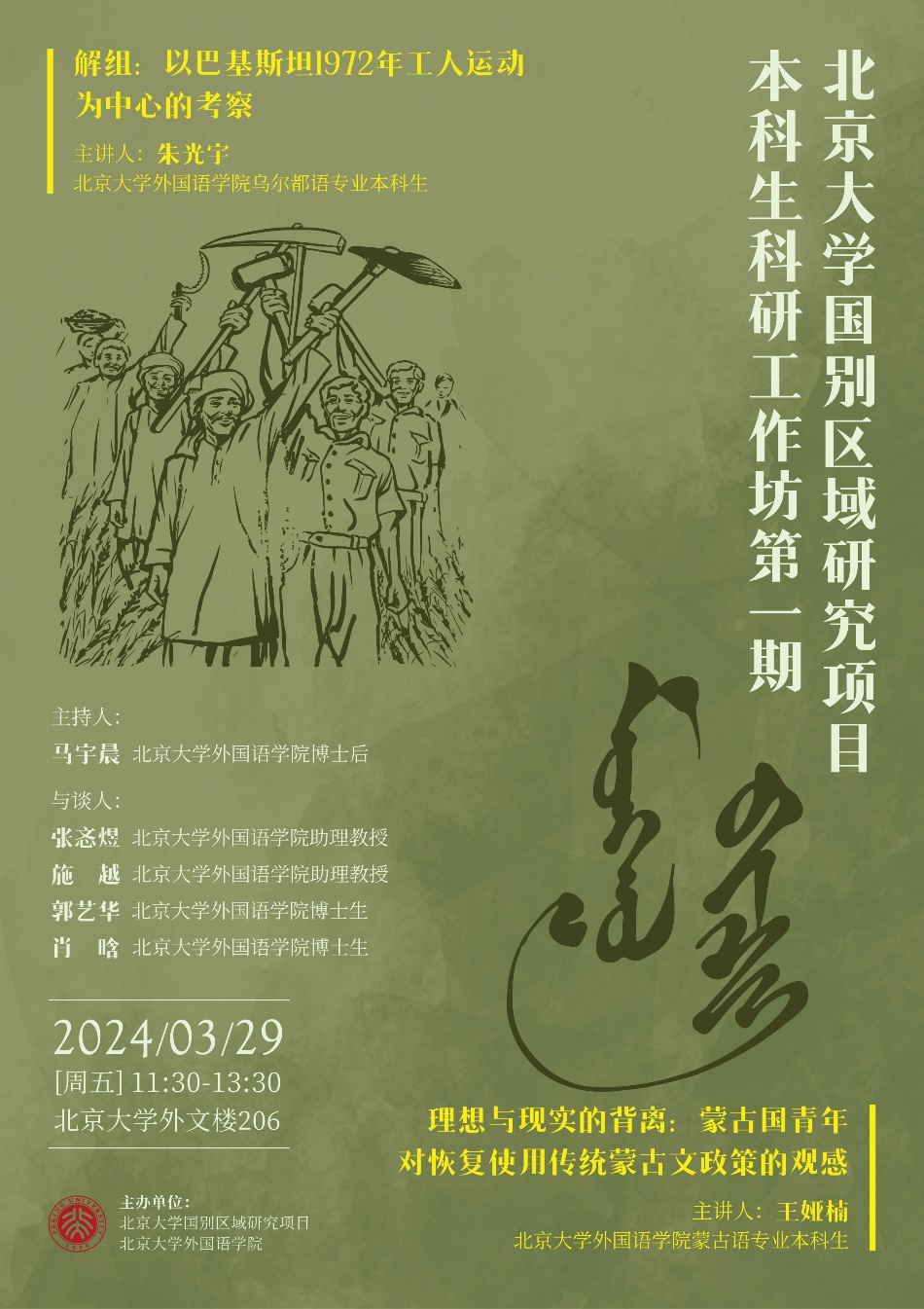 随后,2020级乌尔都语专业朱光宇以“解组:以巴基斯坦1972年工人运动为中心的考察”为题进行汇报。他以1972年工人运动为中心,生动描绘出70年代巴基斯坦的社会状况和工人运动内部动态,诠释了人民党与工会两种权威间的合法性博弈,并分享了自己的研究心得。