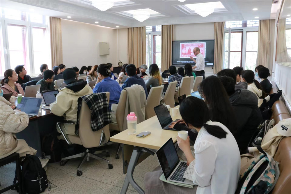 泰尔曼教授的报告之后,与谈人赵白生教授的点评精彩纷呈、引人深思。他充分肯定了泰尔曼教授的学术观点和研究方法,特别是他从当时喜闻乐见的艺术形式,如画报和电影入手来建构国际主义美学,值得借鉴。与此同时,他也提出泰尔曼教授的研究还可以从苏中双方观众接受反应、中方电影参与者的传记文献,如日记、书信、回忆录等等方面继续挖掘,以便描绘出苏中跨文化交流的立体图景。在互动环节中,听众积极提问,现场气氛友好热烈。