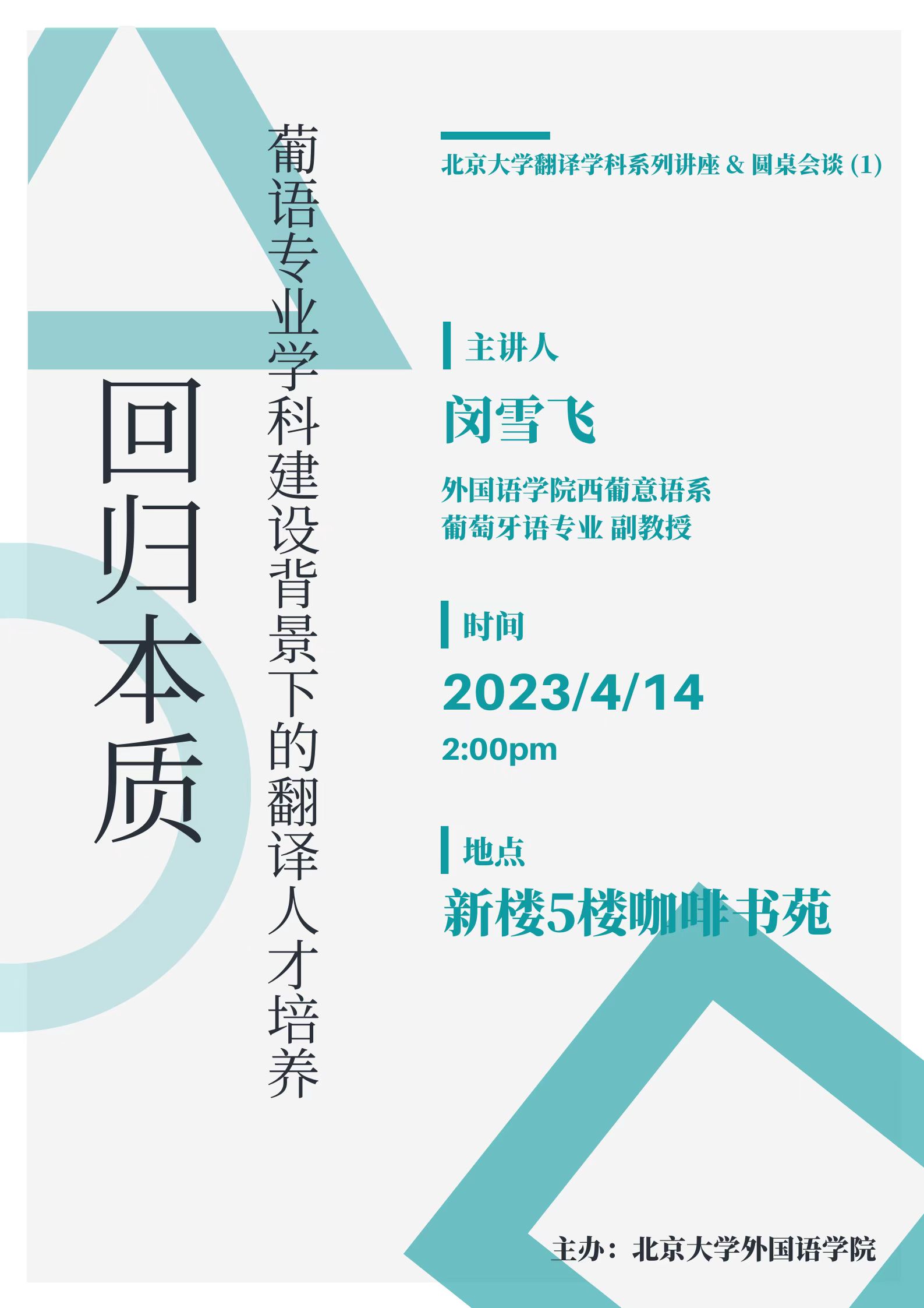 北京大学翻译学科系列讲座&圆桌会谈(1)回归本质——葡语专业学科建设背景下的翻译人才培养
