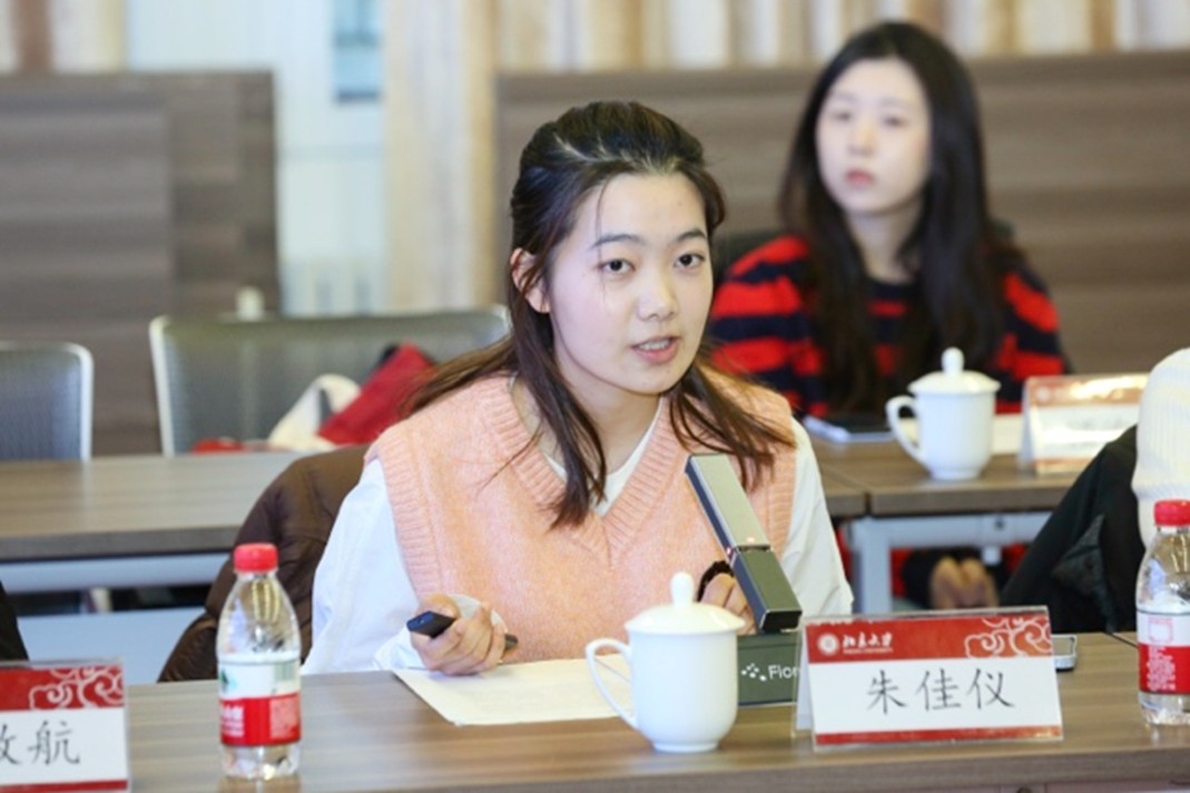 同学们从学术探索、海外交换、第二课堂等维度,分享了一年来的成长与收获。朱佳仪讲述了自己在语言学习、学术研究中的兴趣探索。在北大外院学习的两年里,她深刻感受到语言绝不仅仅是一种工具,在一步一个脚印的攀登中,她从语言洞见文化,从基础学习迈向学术训练,日益成长为一名优秀的外语学习者。