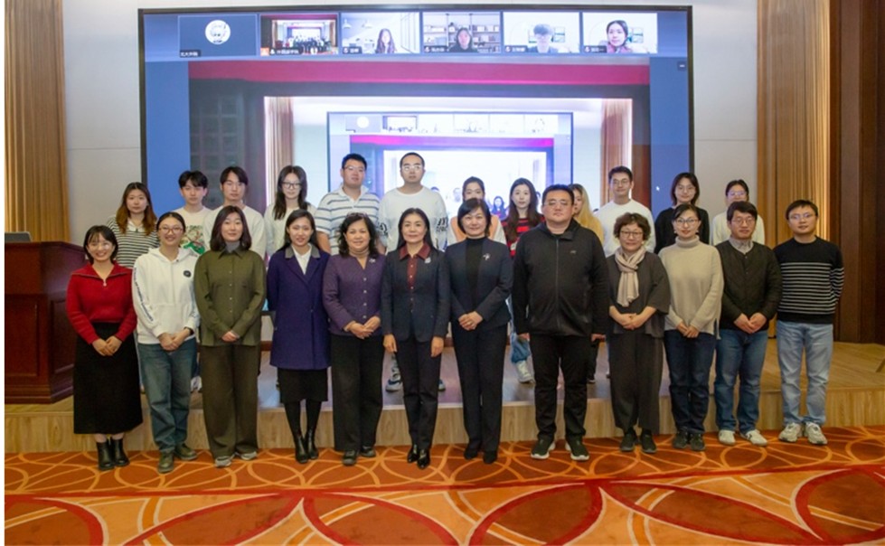 四名在韩交换的同学,线上同步参与班会,张亦菲作为其中的代表分享了海外学习的收获。在她看来,在异国他乡的一个学期,不仅仅是对语言技能的锻炼,更是一次全方位的文化探索。在和韩国同学交流的过程中,同学们以开放包容的心态向外探索,同时以深沉热烈的爱国情怀传播中华优秀传统文化,进行跨越时空、跨越国度的文化传承与交流。