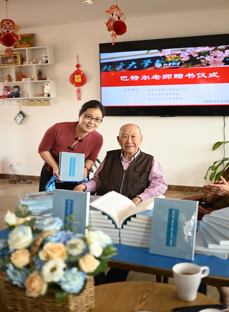 本次赠书仪式不仅是对巴特尔教授学术成就的致敬,更是北大优良师道学风代代相传的一次生动展现,一代代蒙古语专业学人踔厉奋发、求真务实,年轻的一辈青年将接过时代的接力棒,为促进蒙古语言文化研究和人才培养注入了新的动力。