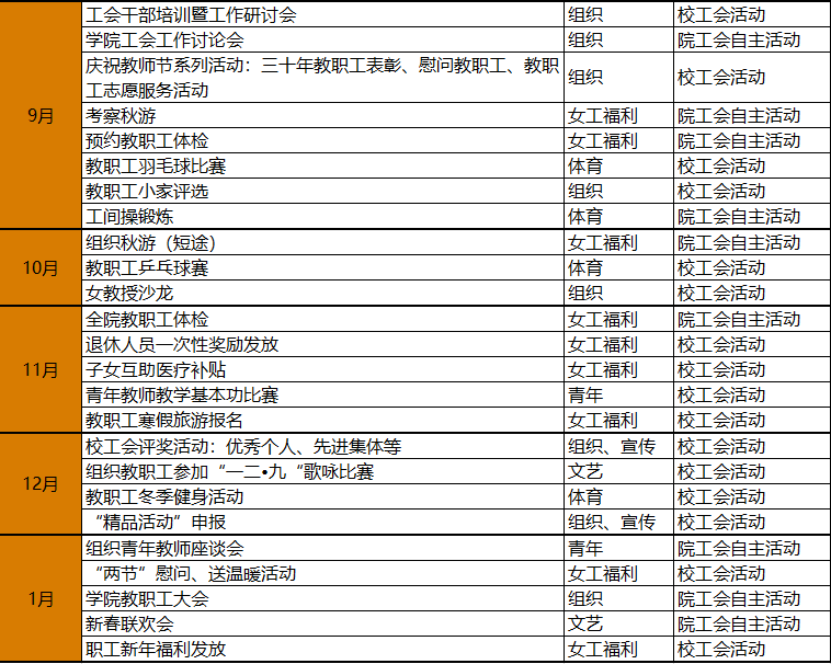 会议下发了《2019-2020学年开云(中国)工会工作计划》,学院工会在配合学校工会完成“规定动作”之外,积极开展很多深受教师喜爱的“自主活动”,例如涵盖在职和离退休教师的春秋游、各种节日的慰问、组建文体社团、组织青年教师座谈会、召开学院教职工大会、举办新春联欢会等丰富多彩的活动。在活动中,各位工会委员各司其职,亲密配合,提前规划,通力协作,全力打造外院工会一个又一个精品活动。