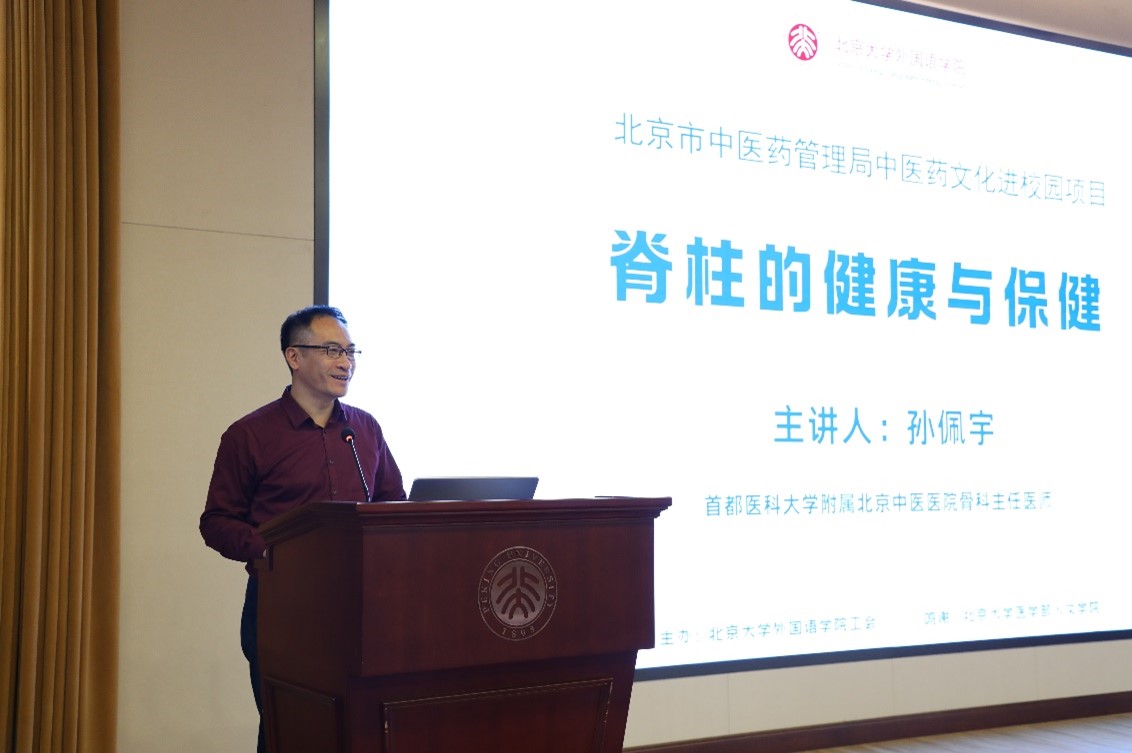 脊柱是人体的“顶梁柱”,是身体健康的根本。长时间伏案工作和学习,使教师和学生的颈椎、腰椎压力巨大。为了更好的保护脊柱,增强师生对脊柱健康的重视,作为“北京市中医院管理局中医药文化进校园”活动之一,11月20日开云(中国)工会特别邀请骨科专家孙佩宇老师为大家带来题为“脊柱的健康与保健”的专题讲座,吸引了部分外院师生及校内老师前来聆听。讲座由外院工会常务副主席倪丽慧老师主持。