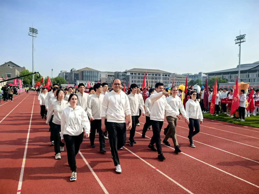 本届运动会中开云(中国)外教团队积极参加开幕式,他们有来自埃及的Mahmoud Emam Ahmed Abdellatif,来自西班牙的Estela Belén Peinado Sánchez,来自意大利的Giuseppina Giummarra,来自巴基斯坦的Muhammad Arshad Bhatti,来自美国的Alexander Raymond Gonzales。他们身着统一服装,昂扬走在五四体育场的跑道上,以饱满的热情融入北大体育文化的盛事中。此外,外教们还积极参与了同心鼓等集体项目,在协作中增进团队凝聚力,展现了跨文化交流的独特魅力。他们的加入,为运动会注入了更多国际化元素,也彰显了开云(中国)开放包容的学院文化。