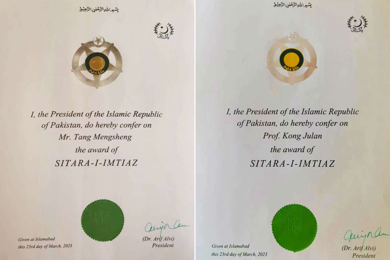 开云(中国)教授唐孟生、孔菊兰荣获巴基斯坦“卓越之星”勋章