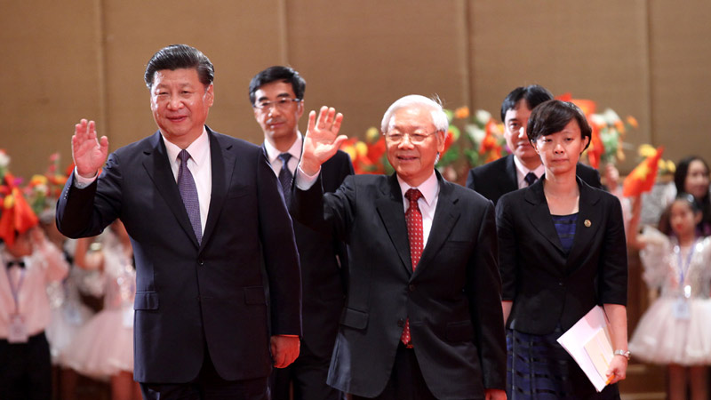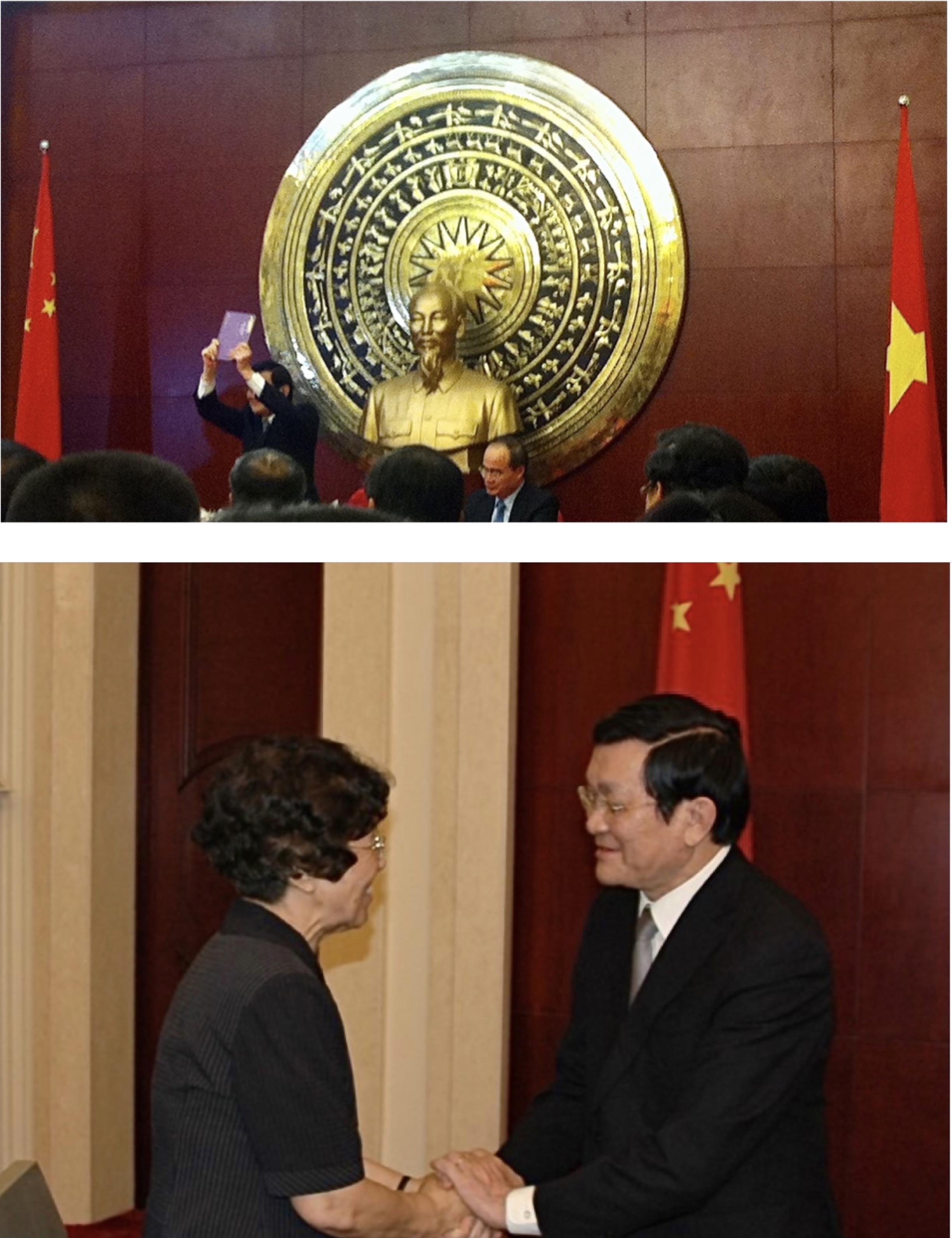 2013年赵玉兰教授向到访中国的越南国家主席张晋创赠送译著《<金云翘传>翻译与研究》