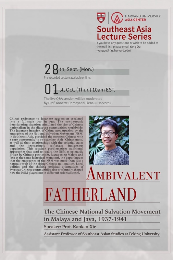 印尼语专业教师谢侃侃举办学术讲座的海报