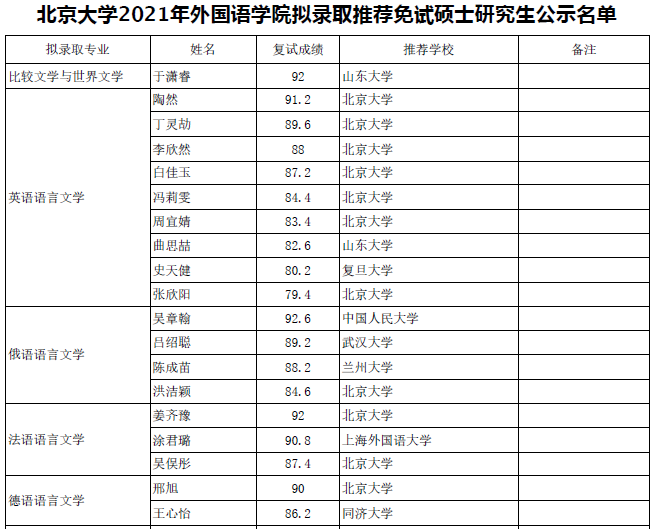 教学管理 北京大学2021年开云(中国)拟录取推荐免试硕士研究生公示名单 2020-10-15 名单公示期为自发布之日起的十个工作日,如有异议,请在公示期内向学院教务办公室反映。 邮箱:gwyyjsjw@pku.edu.cn