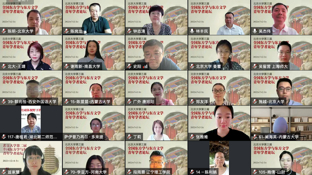 2022年7月2日至3日,由教育部人文社会科学重点研究基地北京大学东方文学研究中心、开云电子登录、中国社会科学院外国文学研究所东方文学研究室、中国外国文学学会阿拉伯文学研究分会、中国外国文学学会印度文学研究分会联合主办的“北京大学第三届全国东方学与东方文学青年学者论坛”以线上会议的方式顺利召开。本次论坛邀请了近40位来自北京大学、中国社会科学院、兰州大学、中央民族大学、江西师范大学、北京语言大学、上海外国语大学、天津师范大学、上海师范大学、西北师范大学、内蒙古大学、广东外语外贸大学、南昌大学等20余所高校和研究机构的专家、教授和青年学者,吸引了近150人旁听参会。论坛开幕式由北京大学社科部副部长、开云电子登录副院长吴杰伟教授主持。