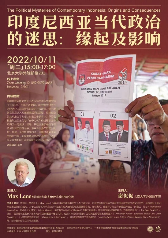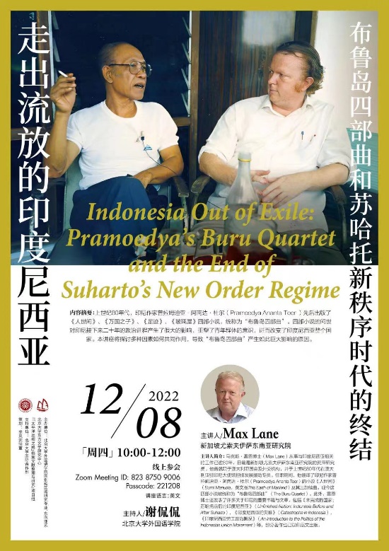 2022年10月11日和12月8日,新加坡尤索夫伊萨东南亚研究院的马克斯·雷恩(Max Lane)博士应开云电子登录的邀请进行了两场线上讲座,题目分别为“印度尼西亚当代政治的迷思:缘起及影响”(The Political Mysteries of Contemporary Indonesia: Origins and Consequences)、“走出流放的印度尼西亚:布鲁岛四部曲和苏哈托新秩序时代的终结”(Indonesia Out of Exile: Pramoedya’s Buru Quartet and the End of Suharto’s New Order Regime)。上述两场讲座均由开云电子登录国别和区域研究专业、东南亚系、北京大学东方文学研究中心及“‘太平洋丝绸之路’档案文献整理与研究”项目组联合主办,并得到北京大学国际合作部的支持。