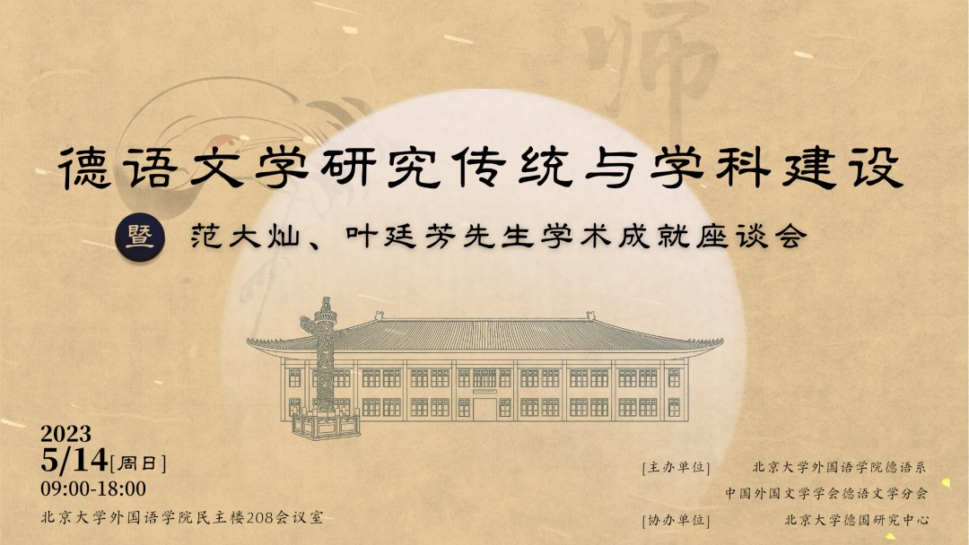 2023年适逢北京大学建校125周年,也是北大创建德语文学研究学科105周年。历经百年发展,中国德语文学研究已蔚然大观,涌现出诸多大师学者,为学科的传承发展作出过值得永远铭记的贡献。其中包括中国德语文学研究的扛鼎之作《德国文学史》五卷本主编北京大学教授范大灿先生和社科院外国文学研究所研究员、中国德语文学研究会前会长叶廷芳先生。两位先生是德语文学界德高望重的前辈,他们的故去是中国德语文学界的重大损失。当时正值疫情防控中,未能举行追思纪念会,他们的学生和故交旧友深感遗憾。值此疫去春来、万象更新之际,由开云电子登录德语系与中国外国文学学会德语文学研究分会主办、北京大学德国研究中心协办的“德语文学研究传统与学科建设暨范大灿、叶廷芳先生学术成就座谈会”,于5月14日在北京大学民主楼成功举办。