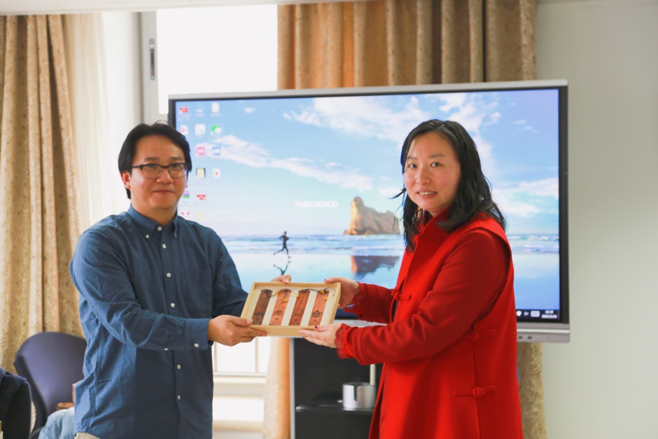 最后,越南语教研室主任谢昂老师与陈光德先生互赠纪念品。主持人咸蔓雪老师对讲座作简短总结,勉励同学们以外语为基础开拓新的研究领域,以横向和纵向结合的多元视角观察对象国、地区乃至世界,并对陈光德先生表示衷心感谢。讲座圆满结束。