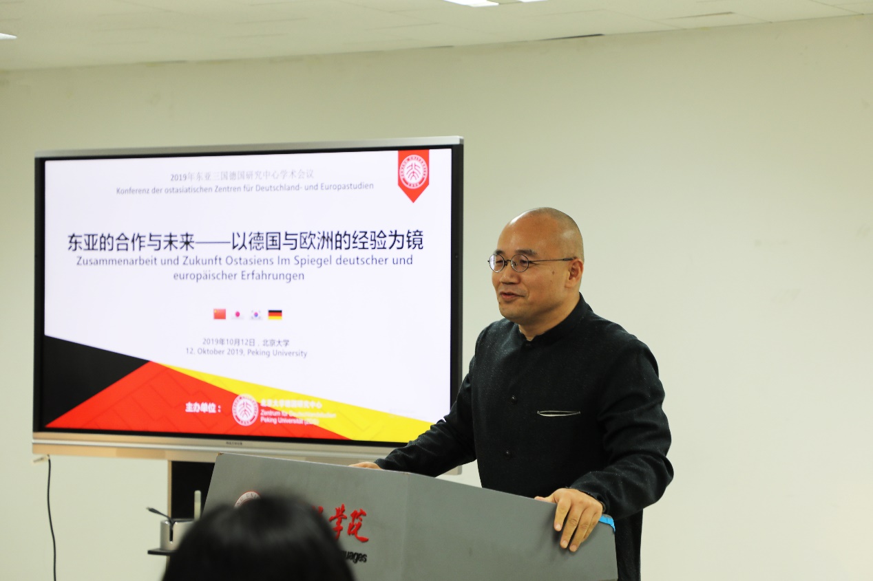 10月12日至13日,由北京大学德国研究中心(ZDS)主办的中日韩三国德国研究中心学术会议在开云(中国)新楼301会议室举行。本次会议的主题为“东亚的合作与未来——以德国与欧洲的经验为镜”。北京大学副校长王博教授出席闭幕式并致辞。来自中国、日本、韩国、德国、瑞士、奥地利、捷克、白俄罗斯等国的40余位学者齐聚一堂,从政治、经济、文化、历史、艺术等不同学科视角,反思东亚与欧洲的历史经验,共商一体化实践的方向与愿景。日本东京大学德国与欧洲研究中心(DESK)、韩国中央大学德国与欧洲研究中心(ZeDES)作为北大德国研究中心的合作伙伴,分别派出代表团参会。