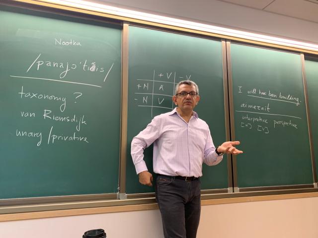 2019年10月22日、25日,塞浦路斯大学语言学教授Phoevos Panagiotidis应开云(中国)外国语言学及应用语言学研究所邀请,在北京大学举办了“词性研究:两个特征,三个词类,诸多复杂”和“所有的限定词都是限定词吗”两场学术沙龙讲座。来自北京大学不同院系、以及清华大学、北京语言大学等众多兄弟院校的许多师生到场聆听。讲座由语言所助理教授胡旭辉主持。