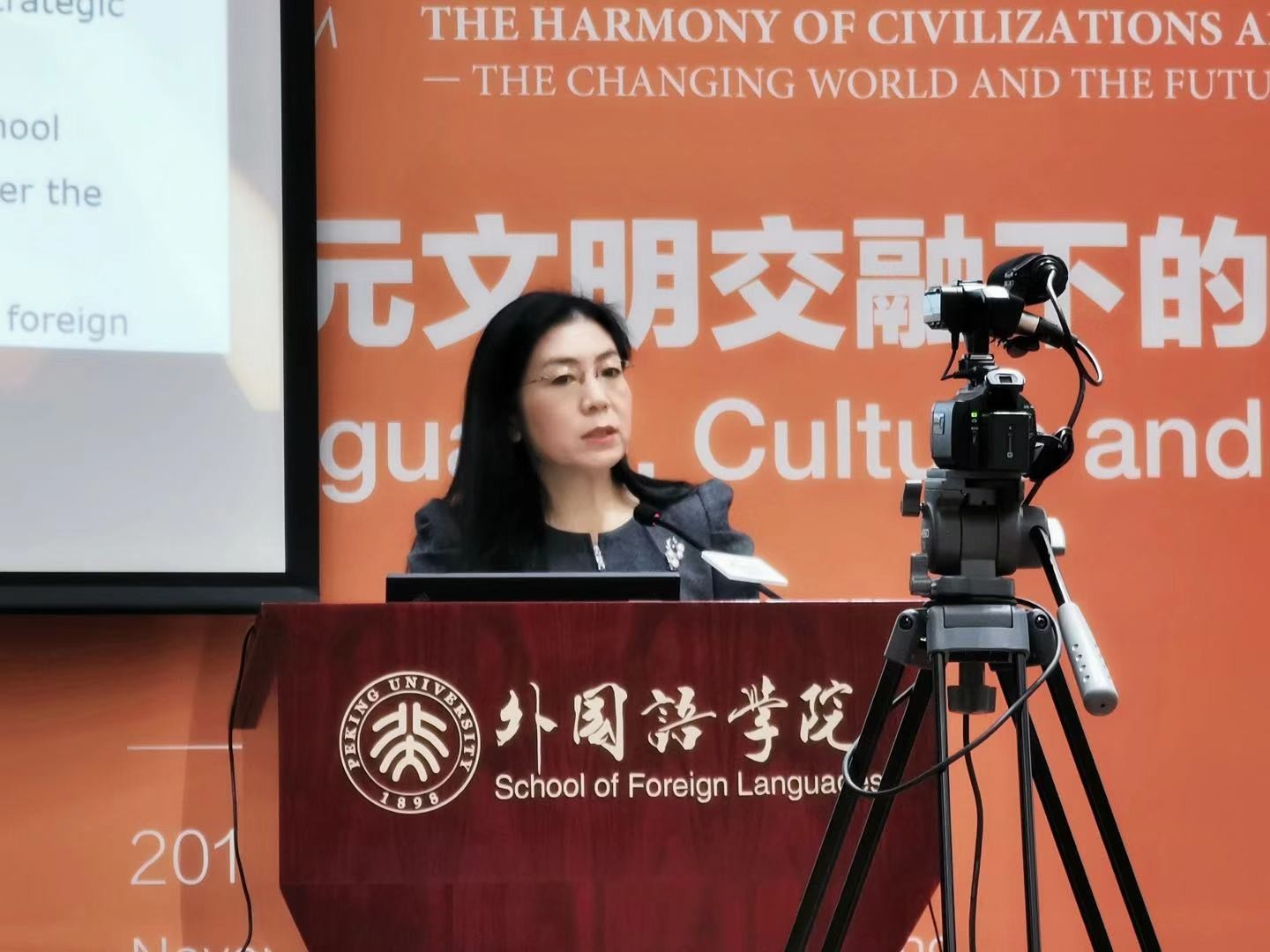 2019年11月3日上午,宁琦教授做了题为“关于“一带一路”背景下的多语种教育的思考”的发言。宁琦教授表示,当前的“一带一路”建设使语言资源成为一种国家急需资源,语言资源建设的迫切需要为多语种教育的发展带来前所未有的机遇和挑战。不仅语言相通、更重要的是深层次的文化和价值理念相通,才可以在不同文化背景之下谈及交流感情、思想沟通、经贸往来、文明互鉴。而中国现有的语言资源储备远远无法满足现实需要,如何从宏观高度进行语言建设规划、开展可持续的语言资源建设、进行富有成效的多语种教育,培养真正具有跨文化沟通与理解能力的语言人才,成为摆在高校面前的重要课题。北京大学结合传统优势,开展语言资源建设和多语种教育,形成多语言工具与专业专长的优势互补,并且不断探索人才培养模式,以期为在国际人文交流、人类文明传承等方面做出自己的贡献。