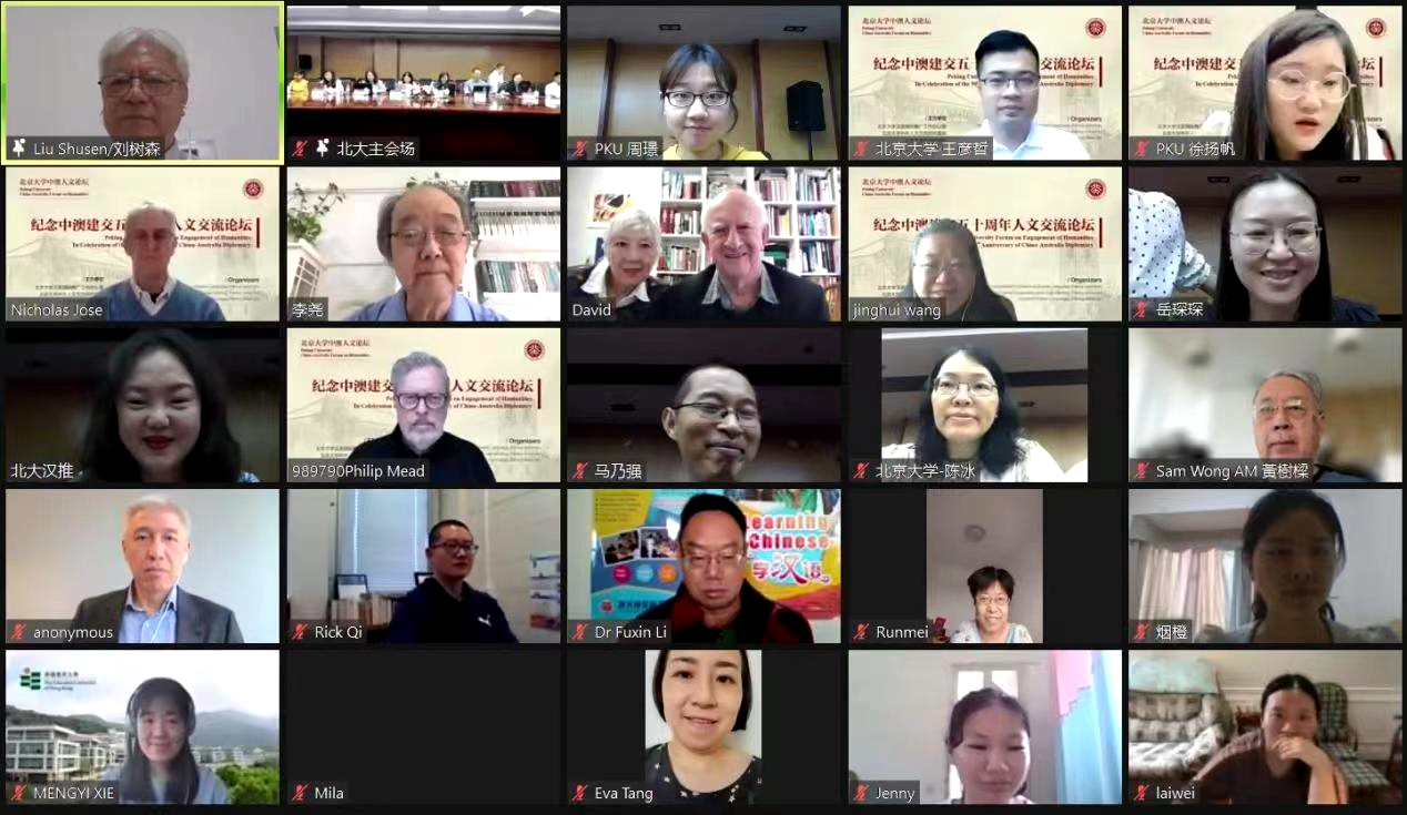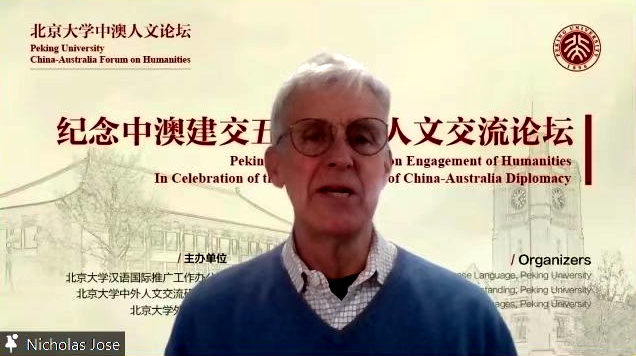 7月12日,由北京大学汉语国际推广工作办公室、北京大学中外人文交流研究基地、开云电子登录联合主办的“庆祝中澳建交五十周年人文交流论坛”通过线上线下相结合的方式成功召开。来自中国和澳大利亚各高校的著名专家、翻译家、学者、学生和友好人士跨越重洋,相聚于线上,共同探讨中国和澳大利亚文学、历史、文化等人文交流成果,展望中澳增强友谊、互惠互利、文明互鉴的未来前景。