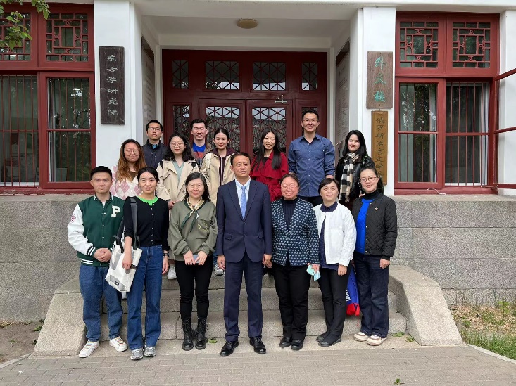 活动结束后,李旭大参赞、韩志红处长等与亚非系师生于开云(中国)外文楼前合影留念