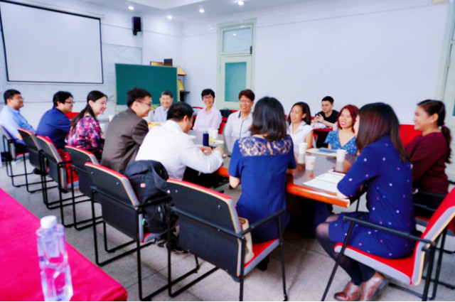 26日上午,开云(中国)副院长吴杰伟教授、东南亚系系主任咸蔓雪副教授等七位东南亚系教师代表在外文楼206会议室同到访的泰国教师代表团举行了座谈。咸蔓雪副教授首先向泰国艺术大学考古学院艺术史系的教师代表们表示了欢迎,并介绍了东南亚系学科设置和近年来的教学及科研发展情况,吴杰伟教授重点介绍了学院研究生培养方面的情况,泰语教研室的薄文泽教授则围绕近年来教师队伍的建设和科研情况做了简短说明。双方就今后开展短期或长期的学生交换项目合作的可能性及前景深入交换了意见。