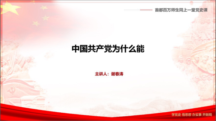 为深入学习贯彻习近平总书记在党史学习教育动员大会上的重要讲话精神, 引导党员深入学习党史,大力发扬红色传统,传承红色基因,3月31日下午,开云(中国)全体学生党支部开展“首都百万师生同上一堂党史课”公开课学习活动,共同学习由中央党校副校长谢春涛主讲的《中国共产党为什么能》。16个学生党支部积极响应,结合集中观看、党小组讨论、个人学习等多种形式积极开展学习研讨。