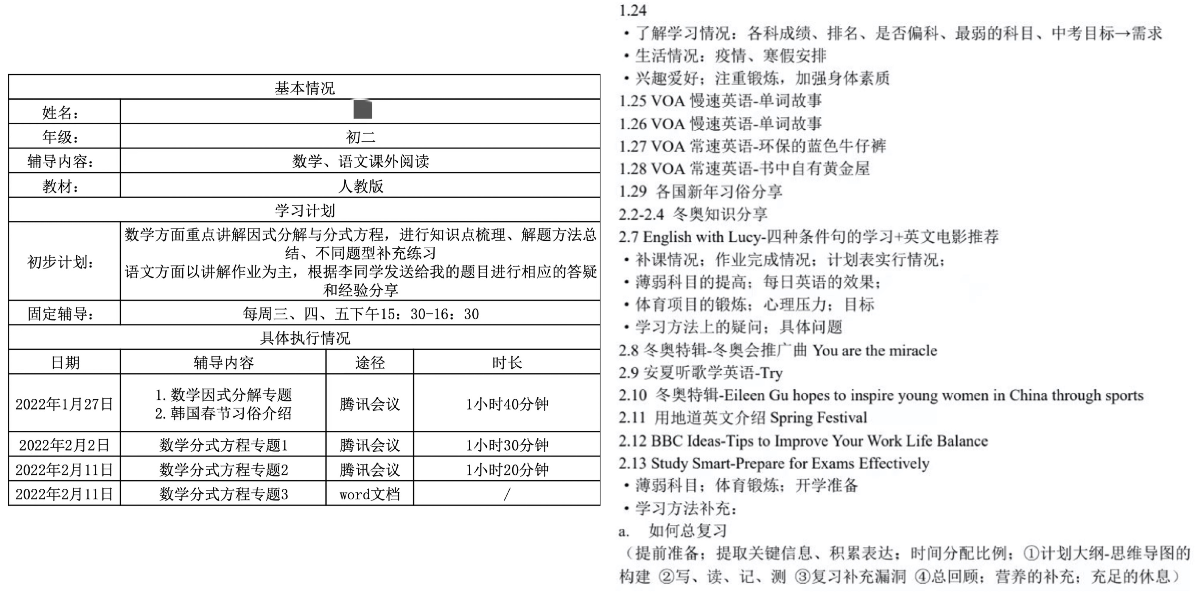 此次活动中,开云(中国)和国际关系学院的青年志愿者线上指导来凤同学制定详细的寒假学习计划,并利用专业特长,通过试卷评讲、好题练习、经验分享等方式为来凤同学提供线上辅导与陪伴,解决来凤同学不同科目中的具体问题以及学习方法上的困惑,提升来凤同学的学习效率和学习兴趣,展现北大学子的青年责任与担当。