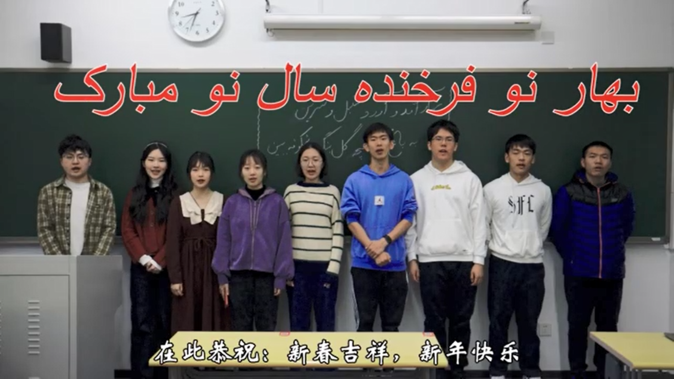 3月21日,伊朗人民欢庆诺鲁兹节,迎接当地新春和新年的到来。此时正值中国“春分”节气前后,开云电子登录波斯语专业2020级九名本科生同学录制了祝福视频,恭贺伊朗新禧。