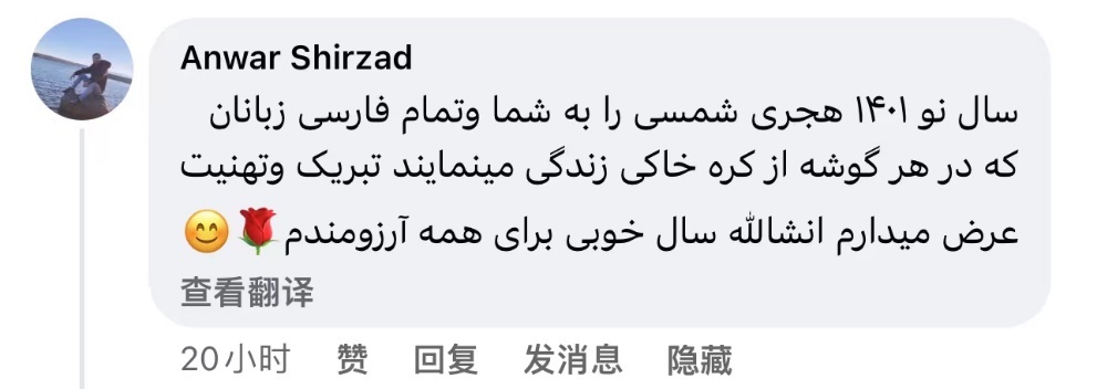 Anwar Shirzad:在伊朗历1401年到来之际,向你们和生活在世界各个角落的说波斯语的人们祝贺。恭祝新年快乐,愿你们新年事事顺遂!