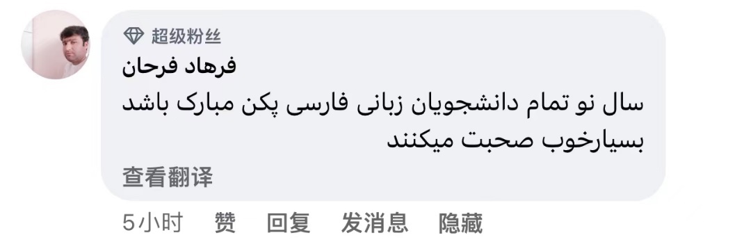 Farhad Farhan:祝北京大学波斯语专业全体同学新年快乐。他们的波斯语讲得相当好!