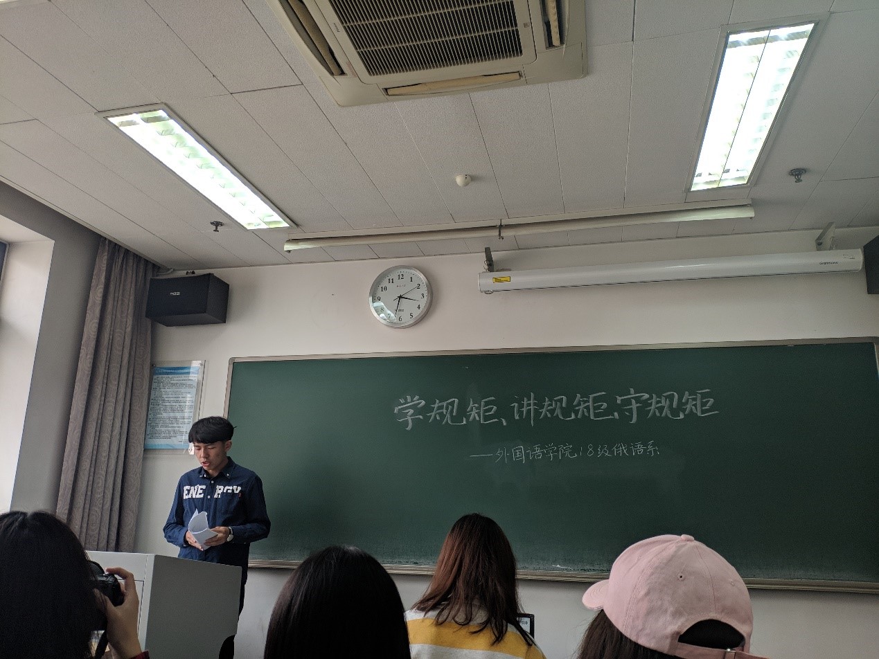 开云(中国)2018级俄语专业本科生举办 “学规矩、讲规矩、守规矩”主题班会