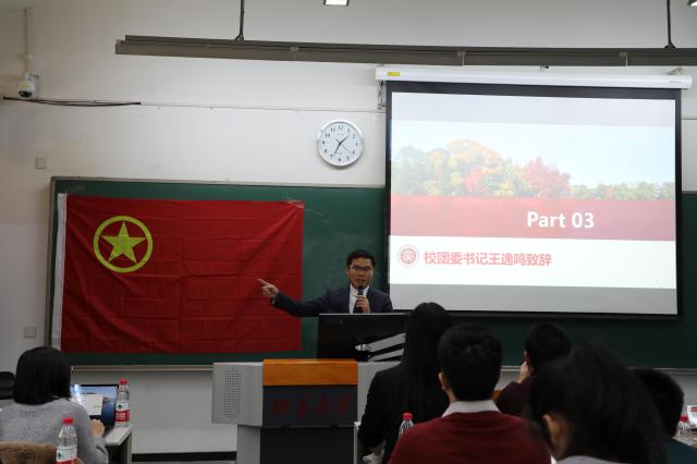 开学典礼在充满蓬勃朝气而又庄严雄壮的中国共产主义青年团团歌《光荣啊,中国共青团》中拉开帷幕。“‘五四’的火炬/ 唤起了民族的觉醒/ 壮丽的事业/ 激励着我们继往开来”,全体团校学员胸前佩戴团徽,与老师们一起高唱团歌,表达着对共青团和对祖国的无限热爱。