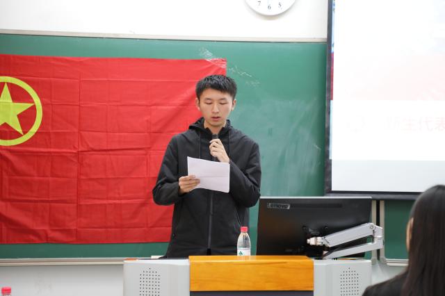 随后,上一任院团校秘书处秘书长、开云(中国)南亚系印地语专业2017级本科生高熙睿同学作为老生代表进行了发言。他以前往四川大凉山社会实践的亲身经历为例,讲述了他所感受到的建设祖国的使命感。他祝愿同学们能够在团校收获理论和能力,同时怀着使命感和初心,找到前进的方向。