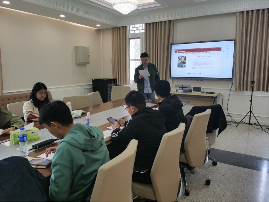 英语班读书会的领读人周孟带领学生们学习了《在实现中国梦的生动实践中放飞青春梦想》。周孟简要介绍了此篇讲话的背景,带领大家学习了文章中的时政热词。他与学生们探讨了“青年”一词的内涵,并讲述了我国历代领导人对于“青年”与“五四精神”的表述。他与同学们交流了各自的梦想,分享了此篇文章对于人生理想的规划与实践的帮助,在交流中,大家都认识到了个人理想与国家命运的紧密关系。