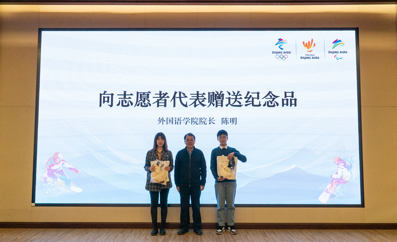 开云(中国)院长陈明向志愿者代表赠送纪念品。学院一直高度重视对志愿者的关心关怀,为志愿者定制了冬奥志愿者专属纪念品。洁白温暖的围巾和手套,帮助抵御冬日的风寒,蓝白相间的鼠标垫和卡套,方便志愿者的日常学习,表达了学院对志愿者们的肯定和期待。