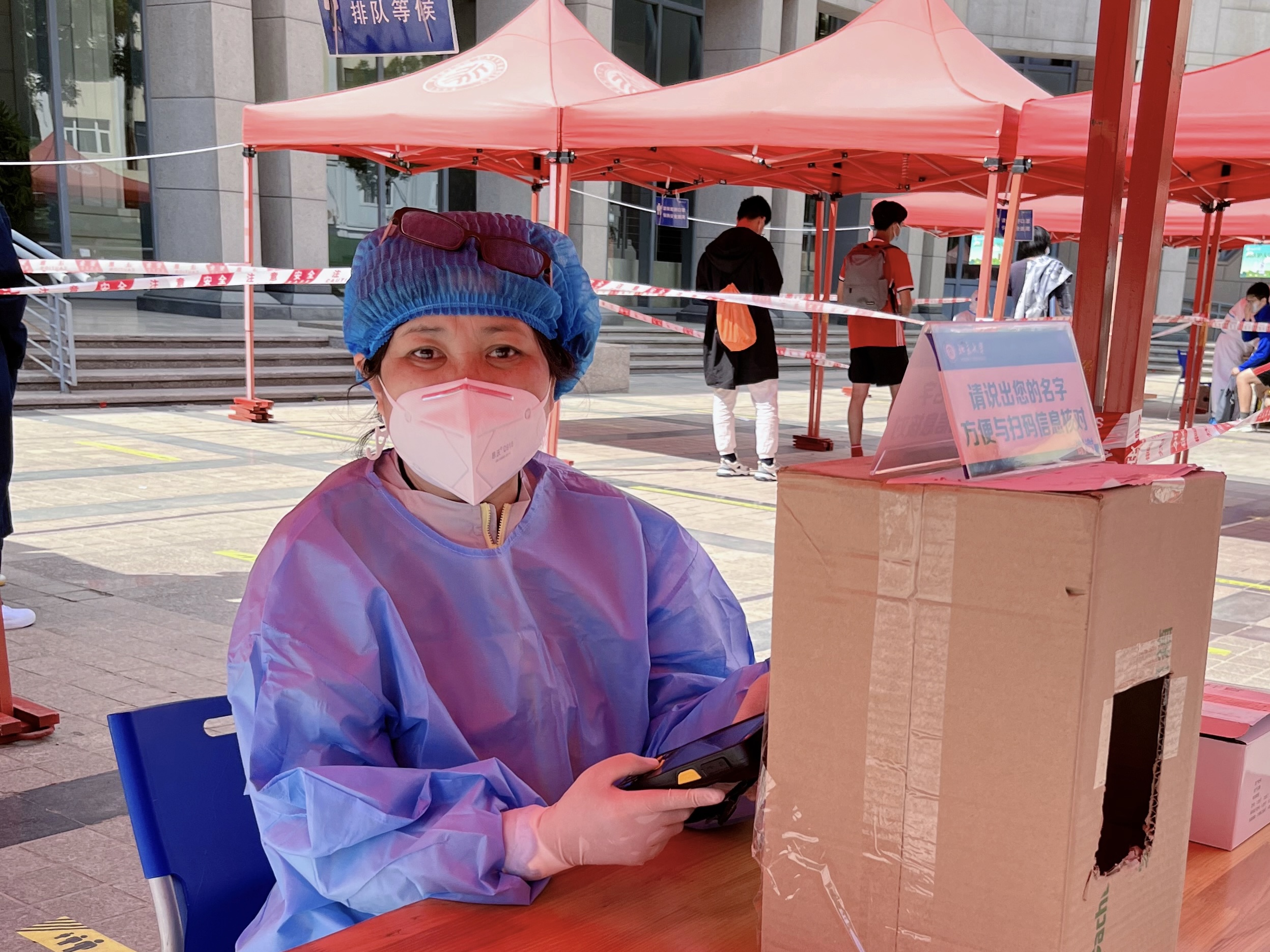 “我想真心感谢全校师生对核酸检测志愿者工作的理解和支持,希望疫情快快过去,大家可以早日一起回到熟悉而热闹的校园。”