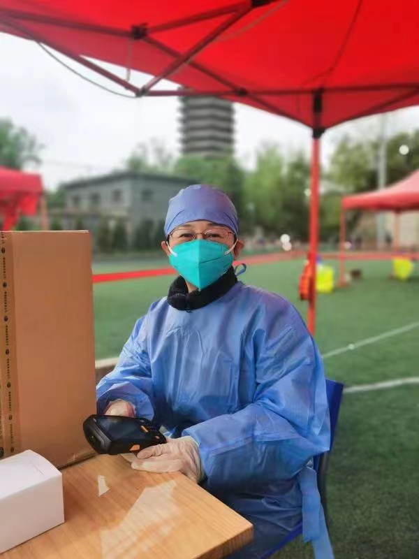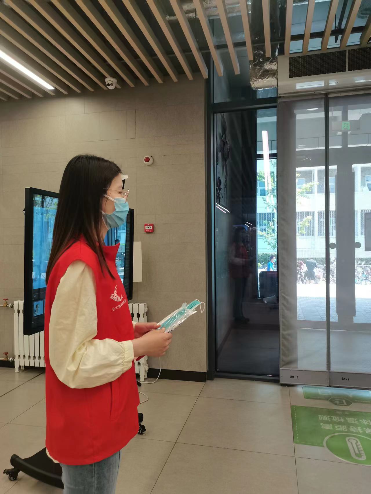 刘淼老师于4月初加入了北京大学疫情防控教职工志愿服务队,主要负责现场秩序维护和扫码登记工作。在成为志愿者之前,她每次去做核酸的时候,都觉得站在与病毒斗争第一线的志愿者们辛苦非常。她会在心里悄悄地给他们点赞,也会真诚地向他们道谢。在自己成为志愿者以后,她觉得能够有机会给大家服务是一件很幸福的事。这份工作虽然辛苦,但十分有意义。