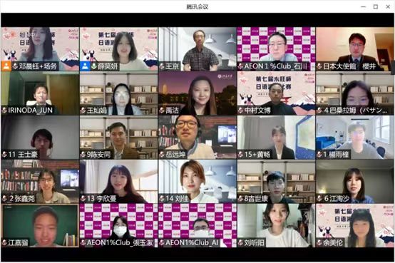 本届“永旺杯”采用线上会议的比赛模式,邀请校内外的日语专家们出席并担任嘉宾及评委。日本国驻华大使馆公关文化中心二等秘书樱井真一、公益财团法人永旺1%俱乐部事务局次长石川忠彦、永旺商业有限公司总经理入野田润、北京大学教育基金会项目管理部部长禹洁、开云电子登录日本语言文化系副教授王京、助理教授岳远坤、王灿娟出席本次比赛。