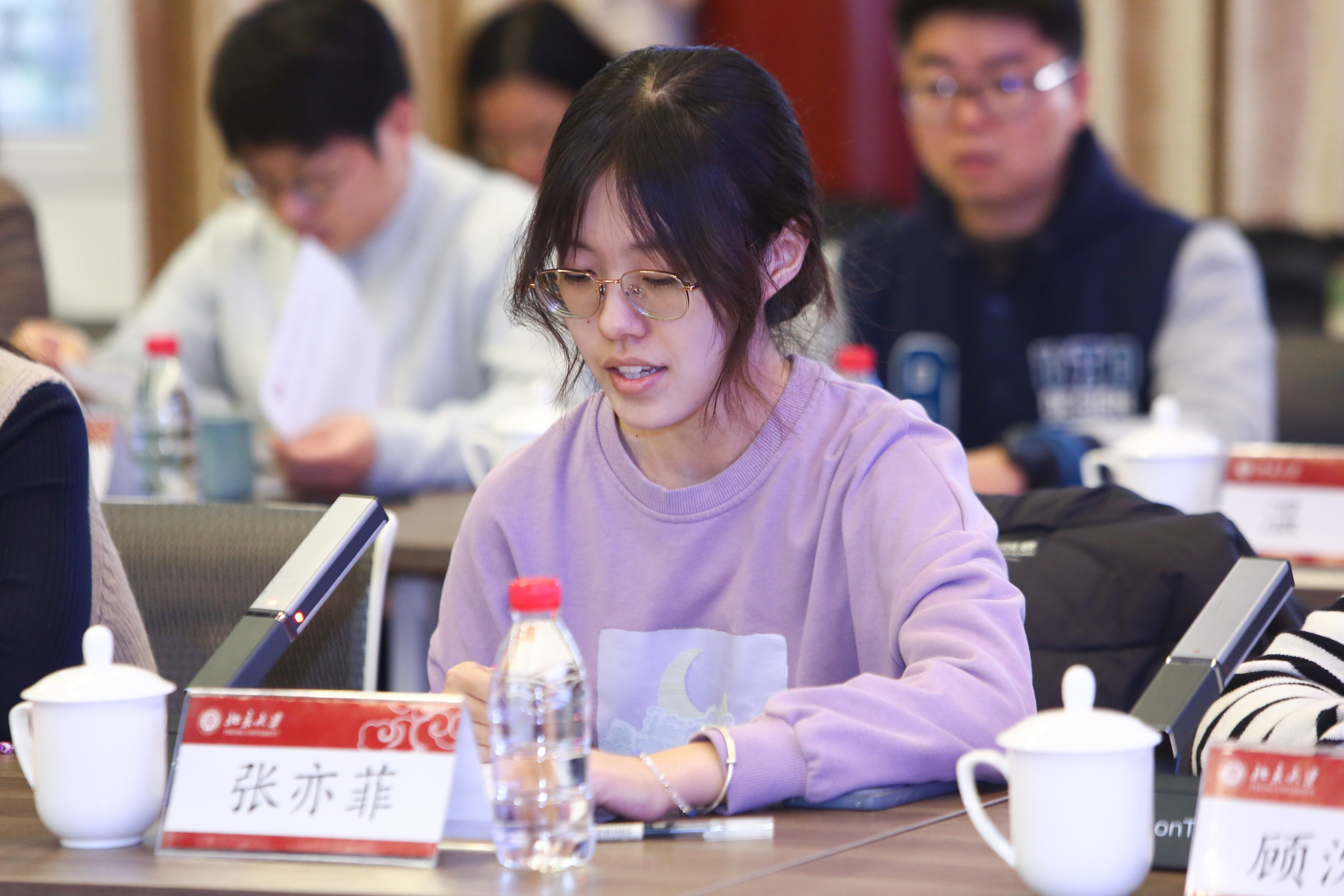 班长张亦菲介绍了过去一年的班级发展情况。在过去一年中,系里老师和辅导员们长相陪伴、温暖守护,班委用心服务、回应需求,同学们积极参与班级建设,三方合力推动党团班一体化,思想引领卓有成效。班级内多次举行多语种读书会,中文、韩文双语研读《习近平谈治国理政》等文献著作,提升语言能力,为讲好中国故事、传播中国声音打下坚实基础。