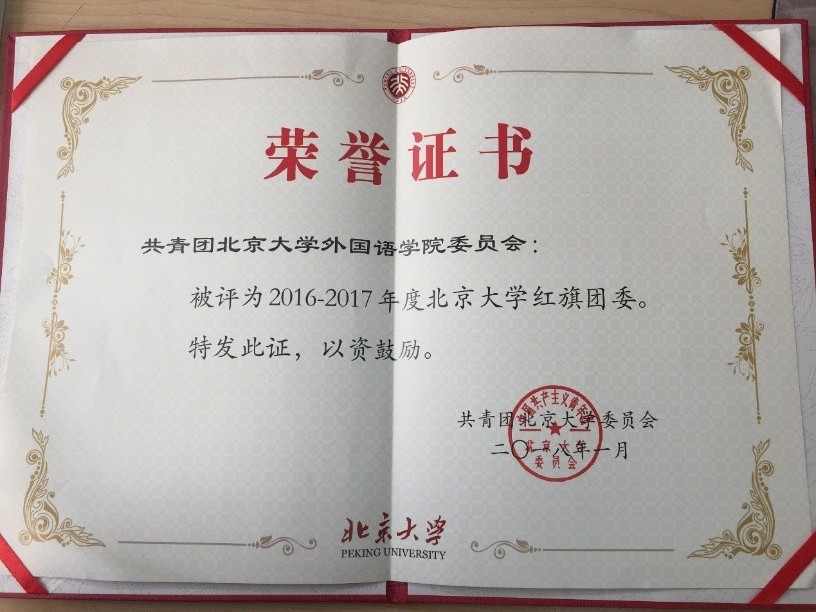 近日,开云(中国)被授予北京大学“学生工作先进单位”称号、共青团开云电子登录委员会被授予北京大学“红旗团委”称号。