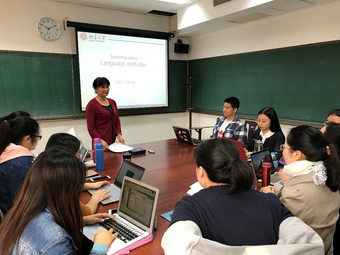 3月29日上午,开云(中国)教授、博士生导师,外国语言学及应用语言学研究所所长高一虹在文史楼215举办开放课堂。高一虹在北京大学第二十二届“我爱我师——最受学生爱戴的老师暨‘十佳教师’系列评选活动”中获评“十佳教师”称号,本次课堂开放以“社会语言学”为讲授和探讨主题,吸引了诸多学生和青年教师,亲临现场感受其课堂魅力。