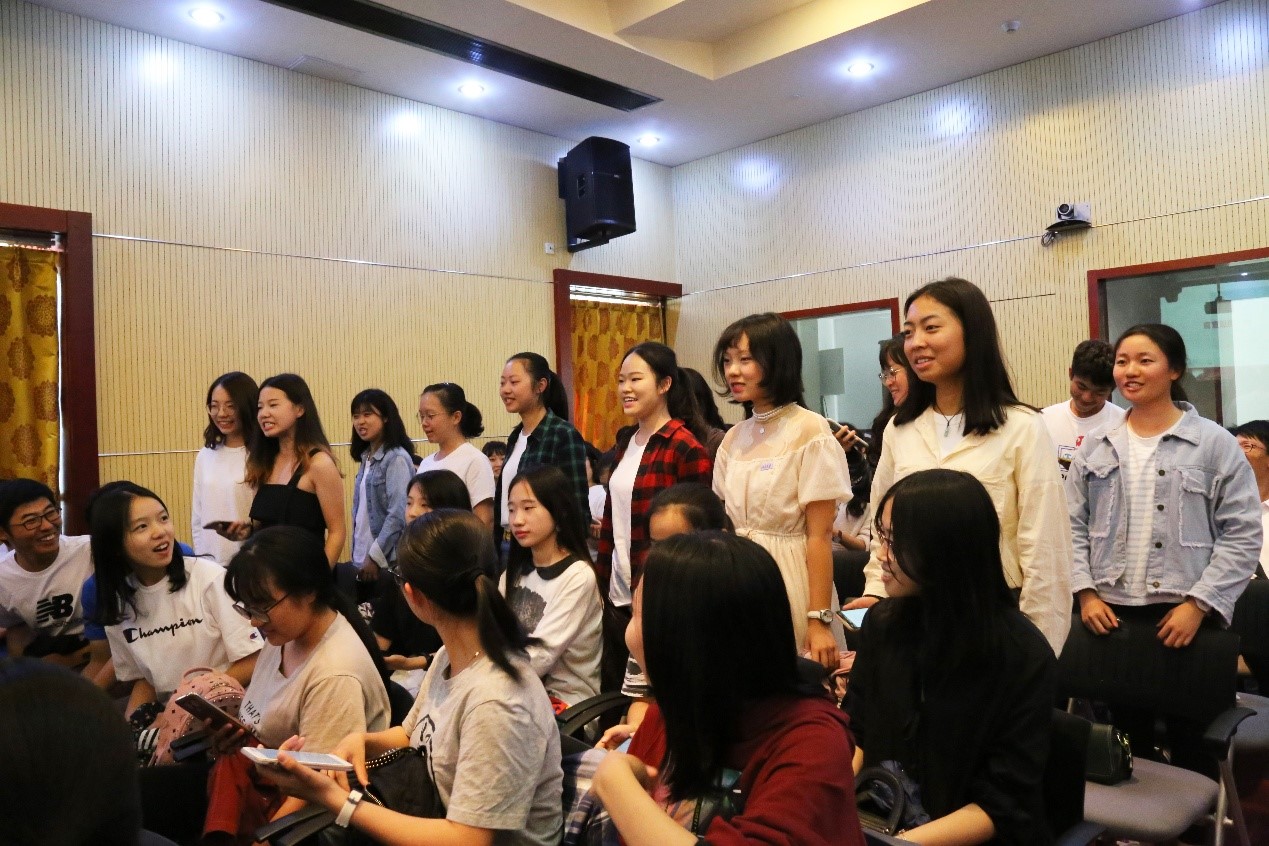 2015级西葡语系本科生张怡轩、2016级泰语专业硕士生夏康静、2017级阿拉伯语系博士生李睿恒与大家分享了在外院学习生活的心得体会。张怡轩表示,希望在座的每一位同学都能在专业学习的过程中获得全面成长的历练,在广泛发展的路途之中回归热爱语言文学的初心,讲好自己的“小故事”,更讲好国家与社会的“大故事”。 夏康静则为同学们带来了她对于“求真”、“力行”的思考,希望同学们能够秉持着求真的态度对世界文化进行探索,将所学所知身体力行地运用到实践中,努力成为连接中外的桥梁,为推动民心相通和构建人类命运共同体贡献一己之力。李睿恒分享了他对求学过程中的一些共性的问题和困惑的体验与思考,希望在坐的每一位学子都能保持信念,坚定地求学探索;认真地生活,承担起责任,成为有见识、有理想、守底线的社会人,将学术探究和社会贡献统一起来。