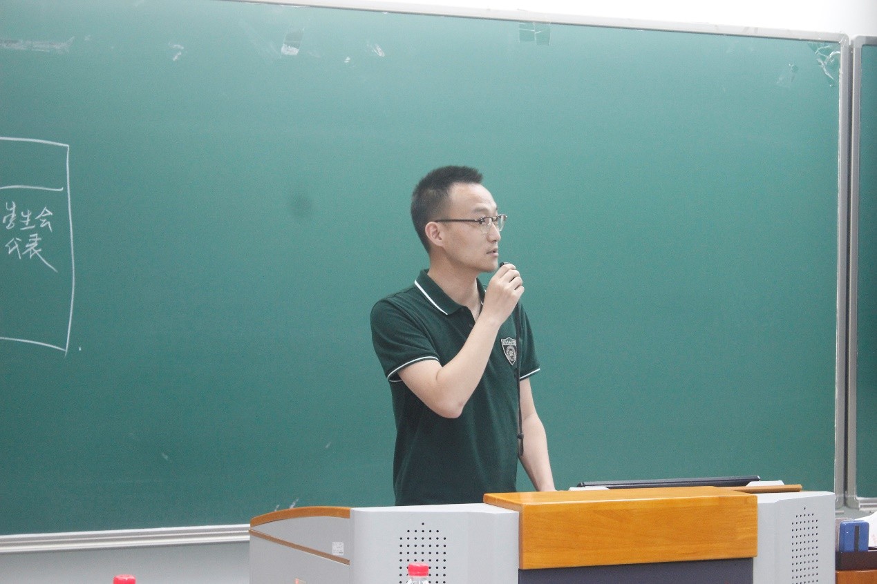 党委副书记王恒首先致辞,他向会议的顺利召开表示祝贺,向第十八届学生会执委会和常务代表委员的辛勤工作表示感谢,对过去一年中全体师生对学院学生工作的监督与配合表示感谢,充分肯定了学生代表们“自我教育、自我服务、自我管理、自我监督”的自主意识。随后他总结了学院学生会和常代表在过去一年中取得的成果,高度肯定了学生工作的突出成绩。对于本次大会的召开,他希望参会人员能进一步明确学生会和常代会的自身定位,更好地发挥出积极的作用,牢记自身代表性,充分发挥桥梁和纽带作用,在维护同学权益、繁荣校园文化等方面积极付出,为同学发声,做好师生交流的纽带。他援引习近平主席对青年提出的六点要求:树立远大理想、热爱伟大祖国、担当时代责任、勇于砥砺奋斗、练就过硬本领、锤炼品德修为,希望同学们做好新时代青年,成为合格的社会主义事业建设者与接班人。最后,他强调了本次大会的纪律,要求本次选举公开透明,程序正当,并对下一届学生会和常代表提出希望,勉励他们接好学生工作的接力棒,发扬外院人的优良传统,在服务和奉献中成长成才。