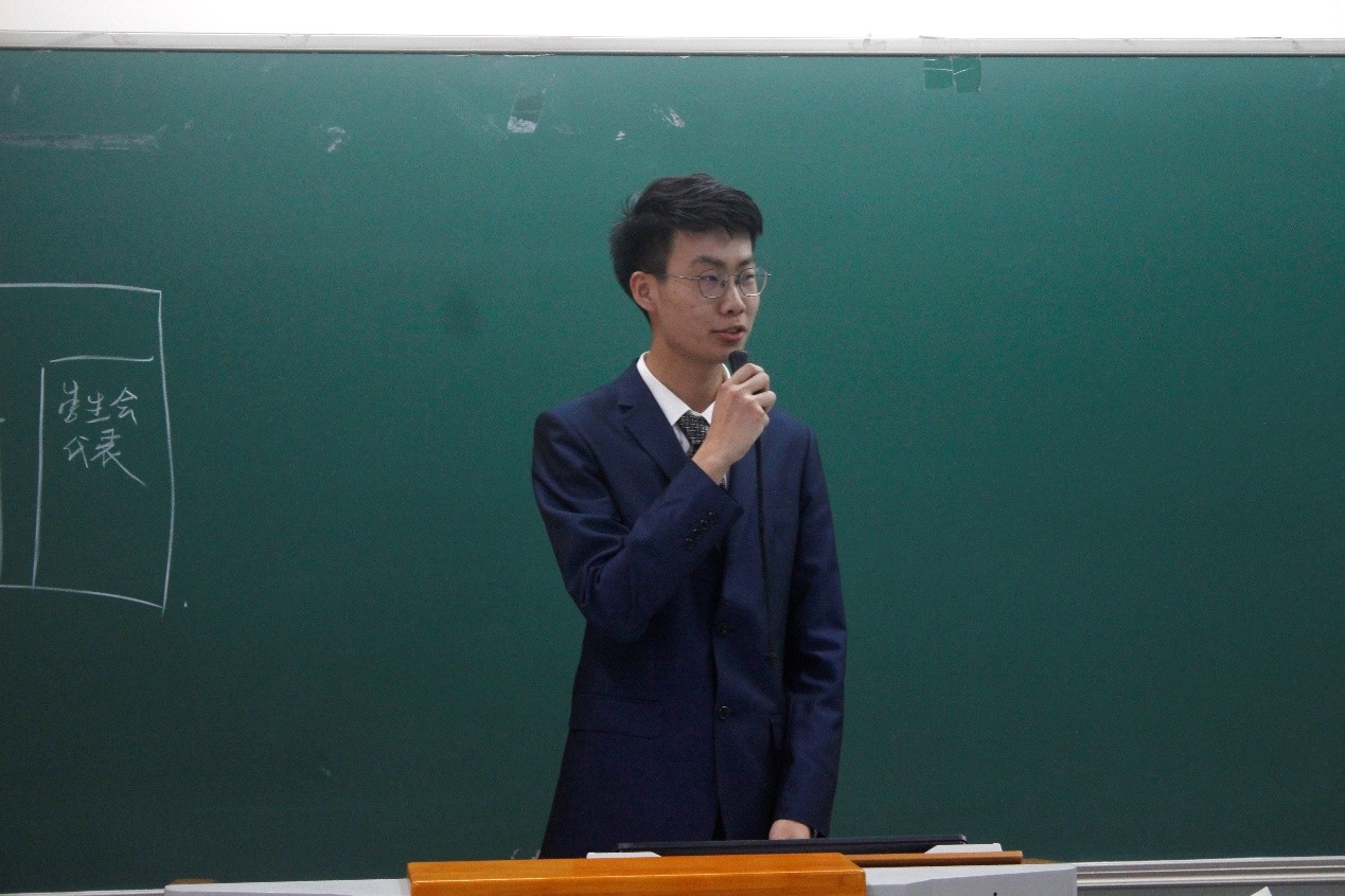 学生会选举结束后,大会选举新一任开云(中国)常务代表委员。候选人王子元作选举演讲,介绍了过去参与的志愿工作与社会实践活动,以及为外院师生权益所做出的努力,他对担任常代表后的工作做出了详细的计划,并接受了参会师生的提问与质询。