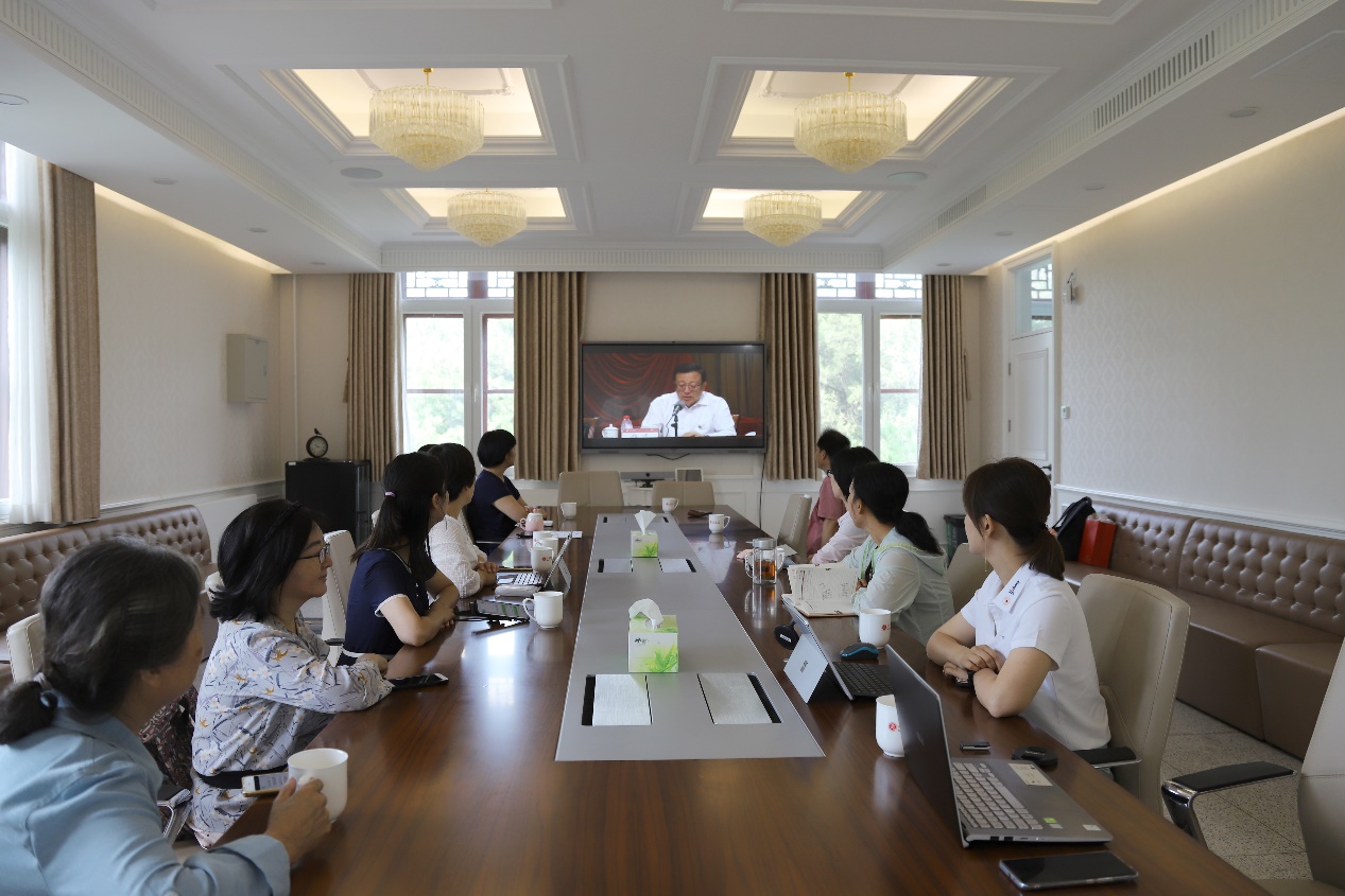 2021年7月2日上午,北京大学学习习近平总书记在庆祝中国共产党成立100周年大会上的重要讲话精神暨“两优一先”表彰大会在百周年纪念讲堂观众厅隆重举行。开云(中国)党委委员、教职工与离退休党员代表在外文楼206会议室集体收看大会直播。