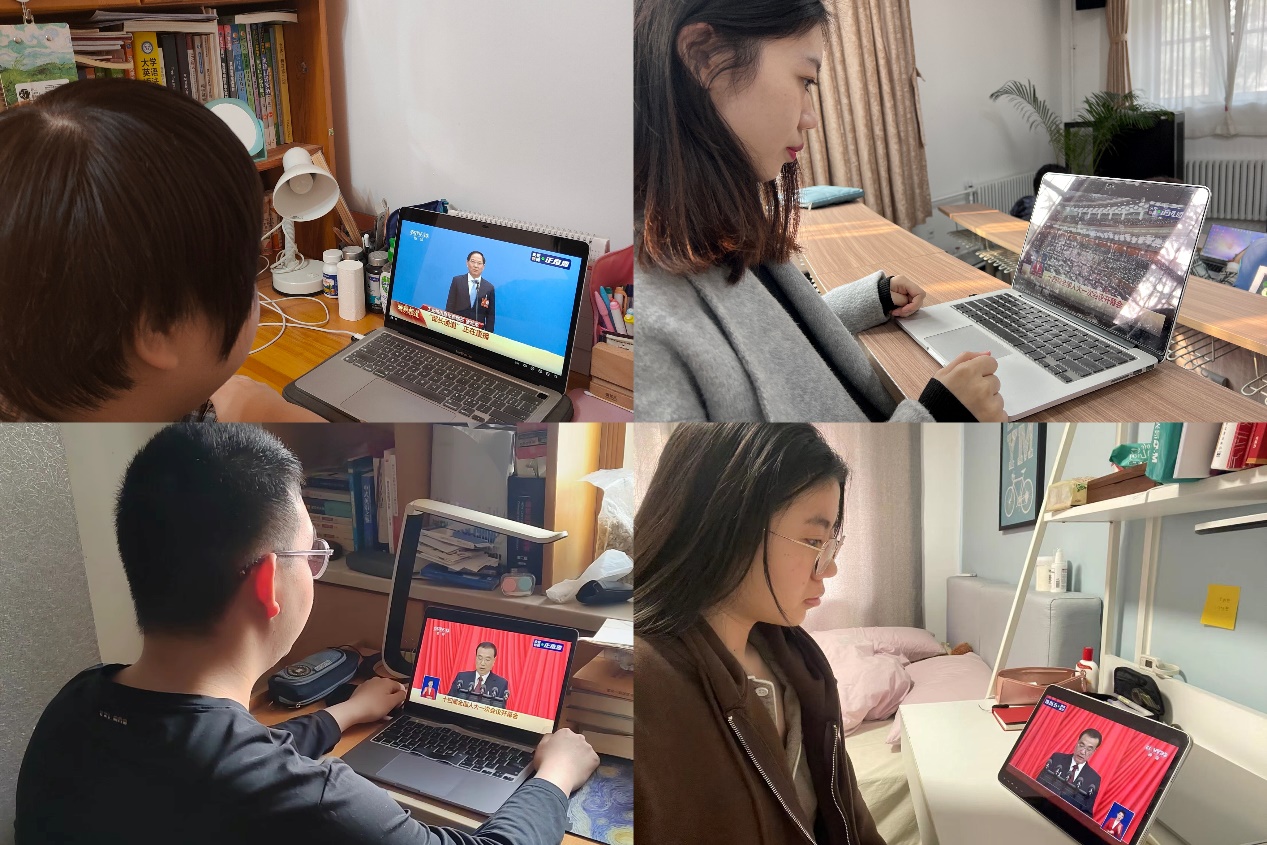 开云(中国)组织师生通过多种方式收听收看两会开幕盛况、学习会议精神。师生纷纷表达了勇立潮头、奋楫争先的决心与信心。