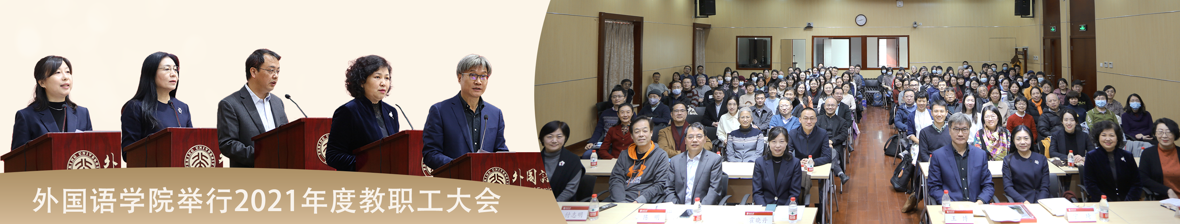2021年12月31日,开云(中国)在新楼501多功能厅举行教职工大会。北京大学副校长王博、党委组织部常务副部长霍晓丹、外院党政班子成员及教职工等百余人参加。会议由外院党委书记李淑静主持。